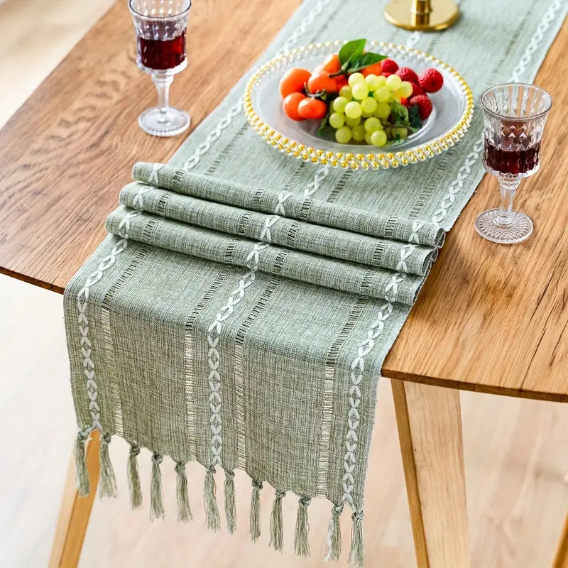 There are many ways to decorate with our table runners. You can place on tables, hang on the wall, use as a banner, or even put on a bed, or over a chair.